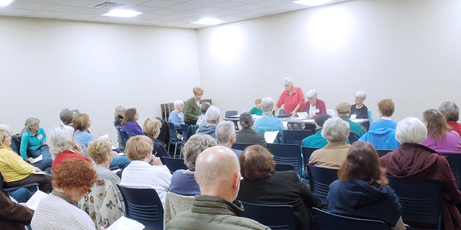 GENERAL MEETINGS are held on the first Monday of each month at 10:15 a.m. in the library meeting room. If a holiday falls on that day, the meeting will be held the following Tuesday.